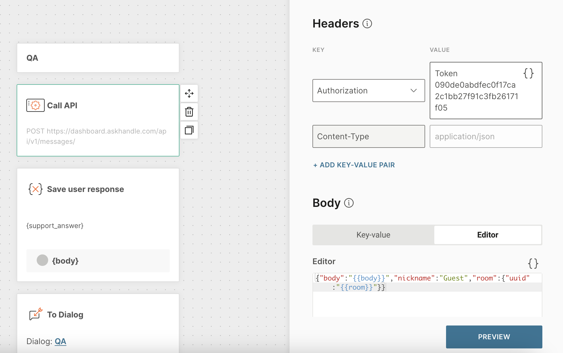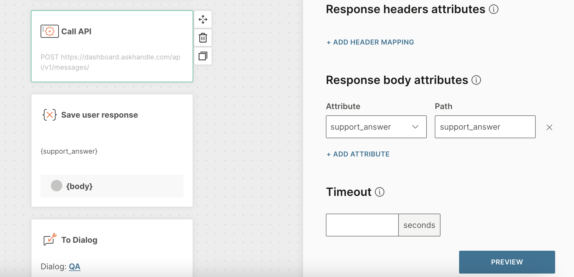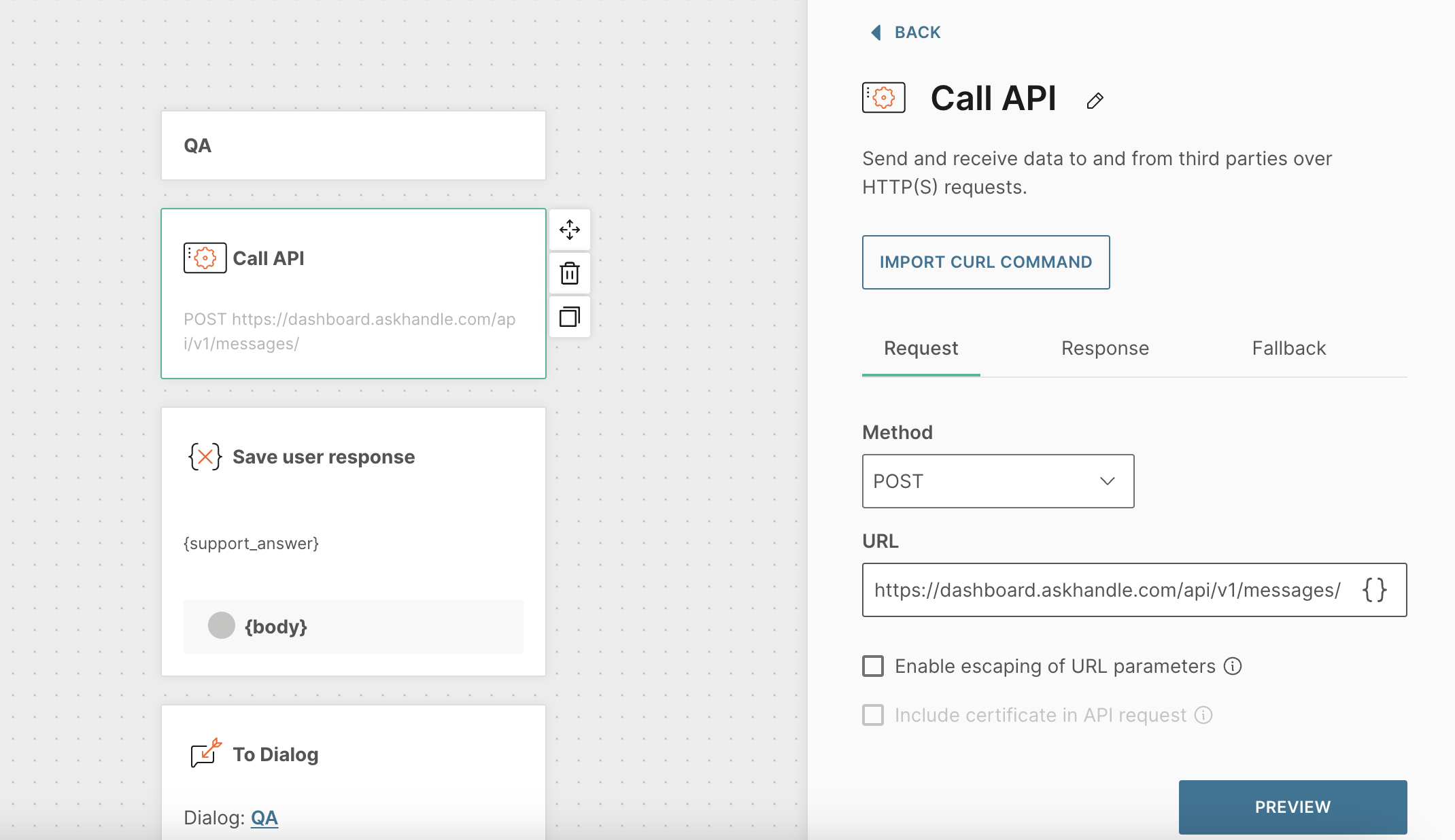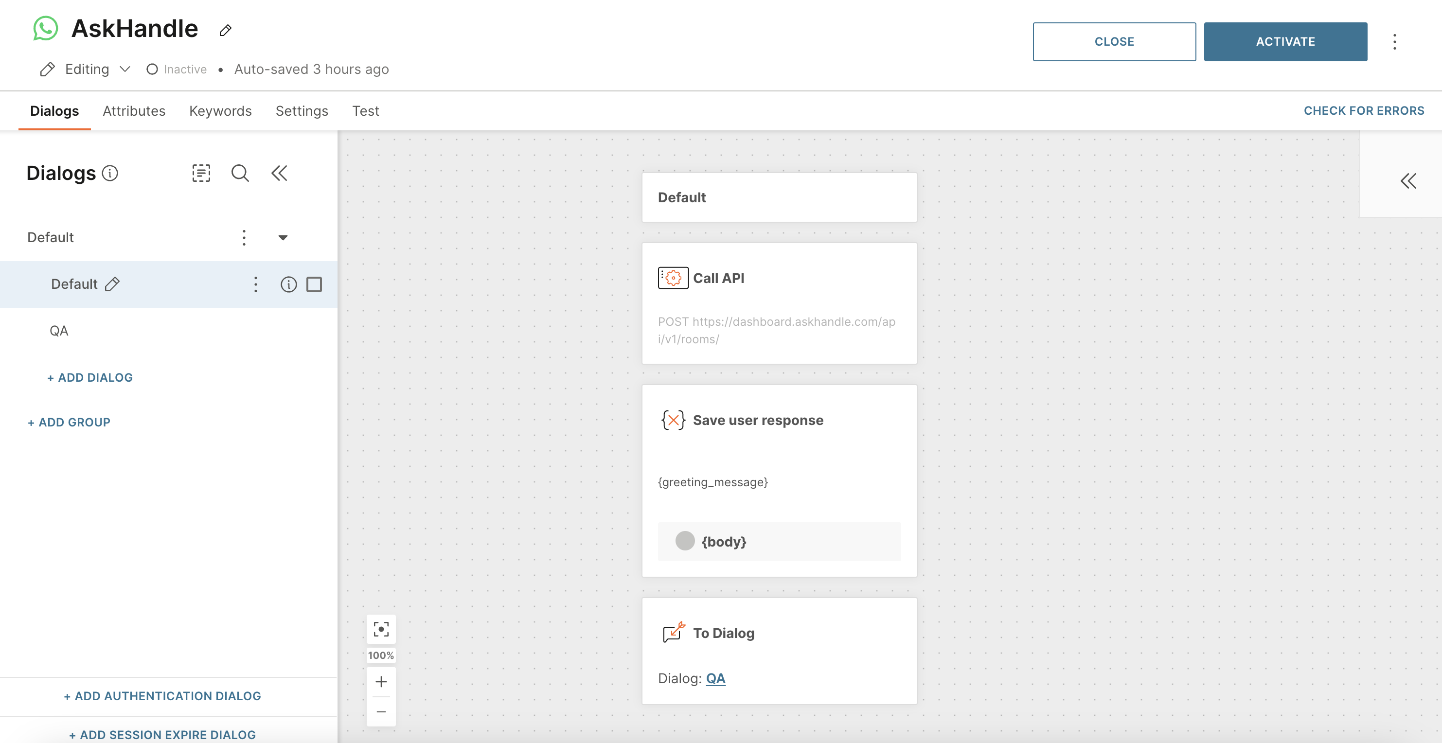 Now let’s configure the QA dialog, where AskHandle AI will provide responses.
