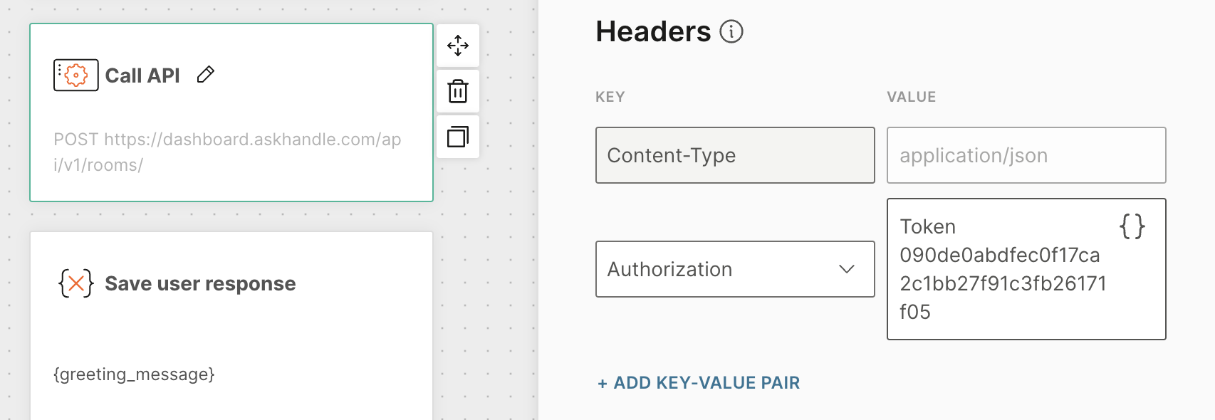 Add a key-value pair for Authorization: