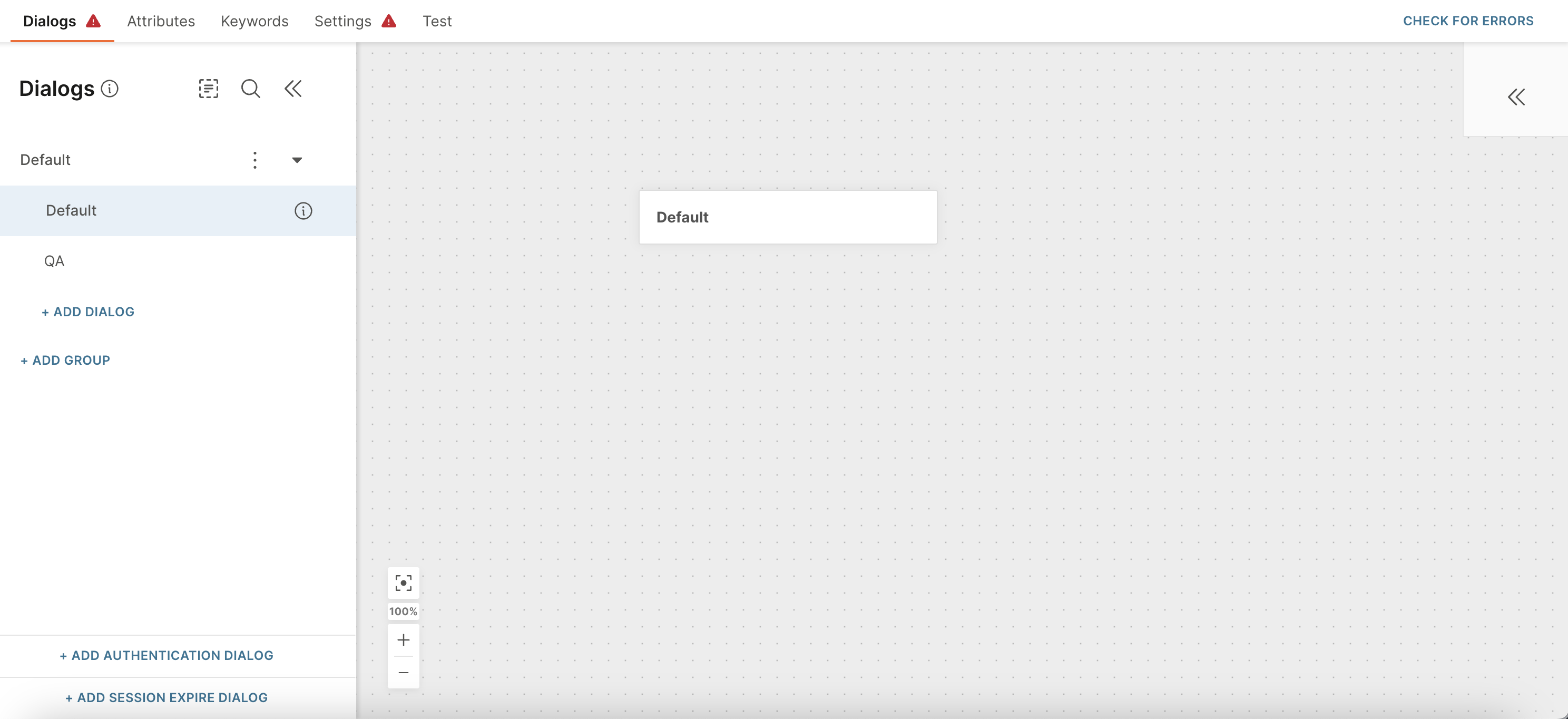 - Click on ADD DIALOG to create a new dialog. Name it QA.